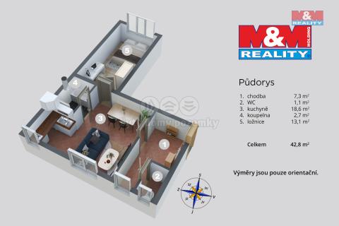K prodeji, Byt 1+1, 36 m2 Děčín, Čsl. partyzánů