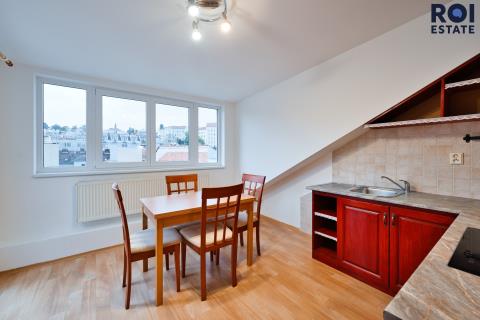 1+1 s výhledem na Špilberk – podkrovní byt v centru Brna Bydlení s výhledem, který vás nikdy neomrzí. V samém srdci Brna, jen pár kroků od kaváren, parků a městského ruchu, najdete útulný podkrovní byt 1+1 o velikosti 52 m². Je to místo s atmosférou, světlem a energií, která je pro centrum Brna typická. Byt se nachází ve čtvrtém – podkrovním patře udržovaného domu bez výtahu. Dominantou je okno a terasa s výhledem přímo na Špilberk a Petrov, které vám každý den připomene, že bydlíte opravdu v Brně. Dispozice 1+1 nabízí prostorný obývací pokoj/ložnici, samostatnou kuchyň, koupelnu s vanou a vstupní chodbu. Byt je čistý, udržovaný a připravený k okamžitému bydlení, ale zároveň nabízí prostor pro vlastní úpravy. Byt je v družstevní vlastnictví, financování lze řešit se zástavou jiné nemovitosti. Družstvo funguje spolehlivě a dům je dlouhodobě dobře spravovaný. Lokalita mluví sama za sebe – centrum Brna, pár minut od České, Zelného trhu i parku pod Špilberkem. Ideální pro ty, kteří chtějí mít všechno na dosah: kulturu, gastronomii i klidné procházky v zeleni. Pokud hledáte charismatický byt v centru města s duší a výhledem, který nikdy neomrzí, tohle je ono. Byt je ideální jako první bydlení například pro studenta nebo mladý pár. Zavolejte a domluvte si prohlídku – takový výhled nenajdete každý den.