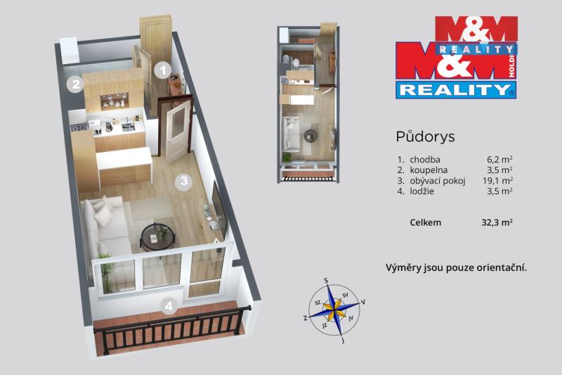 K prodeji, Byt 1+kk, Děčín, Žerotínova