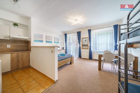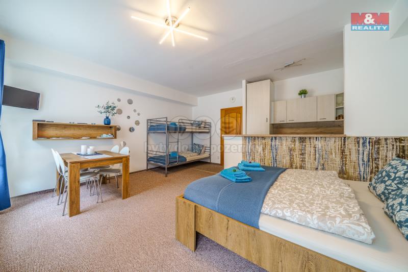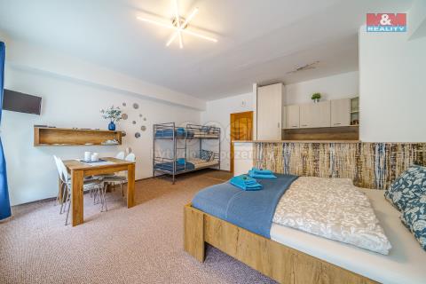 Hledáte investiční apartmán na horách nebo byt ke koupi pro vlastní potřebu? Právě Vám nabízíme hezký a útulný byt o dispozici 1+kk s balkonem v osobním vlastnictví v Jáchymově v ul. K Lanovce. Byt se nachází v 1.NP v cihlovém domě s výtahem, o celkové výměře 36 m2 vč. balkonu a sklepa, prošel rekonstrukcí a prodává se včetně vybavení. K dispozici je vyhrazené parkovací místo před domem za roční pronájem. K bytu náleží sklepní kóje a společná lyžárna v domě. V současné době je byt pronajímán přes Booking s možností přenechání zavedené klientely. Výborná poloha v blízkosti přírody, lázní a lyžařských areálů Boží Dar, Klínovec a Plešivec. Více info v RK.