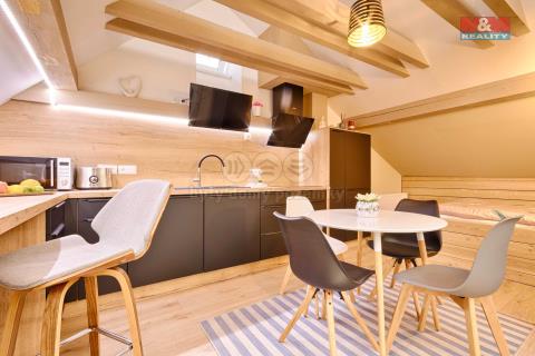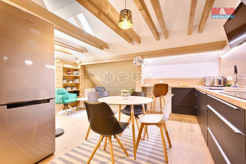 Nabízíme k prodeji stylový podkrovní byt o dispozici 1+kk a podlahové ploše 65 m², situovaný v unikátním měšťanském domě gotického původu, který je významnou ukázkou městské architektury v samotném srdci historického jádra Jindřichova Hradce. Byt se nachází ve 2. patře a prošel kompletní rekonstrukcí, která byla dokončena v roce 2024. Vytápění zajišťuje centrální plynový kotel, interiér kombinuje historický šarm s moderními prvky a důrazem na detail. V apartmánu se nachází klimatizační jednotka. Tato nemovitost je ideální volbou pro investory – nabízí skvělý potenciál pro krátkodobé sezónní ubytování, dlouhodobý pronájem, nebo jako klidné bydlení v centru města. Pokud hledáte nemovitost, která spojuje historii, výjimečnou atmosféru a výhodné umístění, přijďte se přesvědčit osobně. Pro více informací a sjednání prohlídky kontaktujte makléře. S financováním Vám rádi zdarma pomůžeme.
