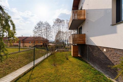 Dispozičně je apartmán řešen s důrazem na funkčnost, dostatek světla a přímé propojení interiéru s exteriérem prostřednictvím terasy a velké zahrady. Ze zádveří a chodby s šatnou navazuje koupelna s WC. Dále prostor přechází do hlavní obytné části spojené s kuchyní, ze které je vstup na prostornou terasu a zahradu. Zde naleznete ideální zázemí pro relaxaci: zahradní nábytek, vlastní saunu, venkovní sprchu a okrasné záhony. Zahrada nabízí výhled na hladinu jezera a nachází se ve velmi klidné části obce, přesto v pohodlné docházkové vzdálenosti na pláž i do samotného centra Lipna.