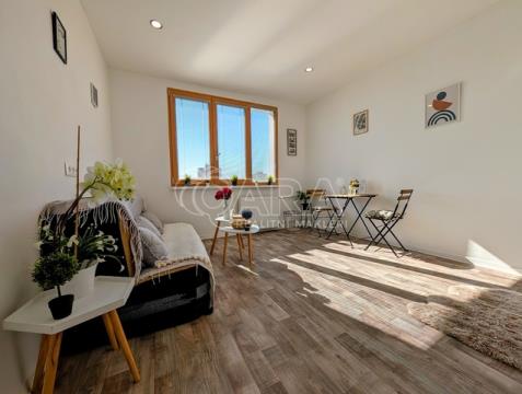 Nabízíme ke koupi krásný byt po rekonstrukci o dispozici 1+kk s výměrou 21 m² situovaný v žádané a oblíbené lokalitě v Plzni na Borech, konkrétně na ulici Šimerova. Byt se nachází v 6. patře panelového domu s výtahem a nabízí příjemný výhled do okolí. Dispozice bytu je řešena jako obytný prostor s kuchyňským koutem a koupelnou. Kuchyňská linka s vestavěnými spotřebiči (horkovzdušná trouba, el. varná deska, digestoř, myčka, a lednice s mrazákem) navazuje na obytnou část, kde je dostatek místa pro denní i noční zónu. Koupelna je vybavena sprchovým koutem a toaletou, umyvadlem a nemlžícím se zrcadlem ukazatelem teploty a dalších informací. Je zde i přípojka a prostor na pračku. Bory se dlouhodobě řadí k nejvyhledávanějším adresám v Plzni. Bydlení zde kombinuje perfektní zázemí obchodů a služeb s rychlou dostupností centra, a přitom máte Borský park s jeho rozsáhlou zelení doslova na dosah ruky. Díky spojení nadstandardního startovního bydlení, perspektivní investice do budoucna a skvělé adresy může být tento byt ideální volbou právě pro Vás. Budu se na Vás těšit na osobní prohlídce.