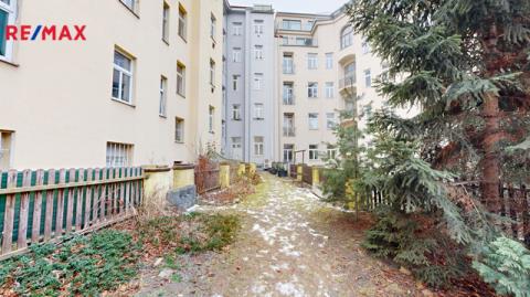 K bytu náleží komora 1,4 m2 přístupná z chodby, sklep o velikosti 2 m2 a podíl na užívání společné zahrady k odpočinku ve vnitrobloku.