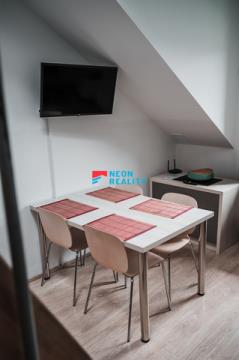 Hledáte místo v horách, kam se pohodlně vejde celá rodina, ale nechcete platit náklady za obří apartmán? Nabízíme k prodeji unikátní střešní byt v srdci Jeseníků, který díky chytrému řešení prostoru a vlastnímu patru na spaní hravě ubytuje 4 až 6 osob. Hlavní přednosti bytu: Chytré spací patro - nad kuchyňskou částí je vybudováno bytelné patro se dvěma dvojlůžky. Získáte tak 4 plnohodnotná místa na spaní, aniž byste zabrali jediný centimetr čtvereční v obývací části. Atmosféra podkroví - Byt se nachází v nejvyšším patře, což zaručuje klid, žádné sousedy nad hlavou a poklidné výhledy. Kapacita - Ideální pro rodinnou rekreaci nebo jako výnosná investice ke krátkodobému pronájmu (ubytuje více lidí než standardní 1+kk). Dispozice a vybavení: Interiér je prakticky rozdělen na vstupní chodbu s úložným prostorem, koupelnu se sprchovým koutem a WC a hlavní obytnou část s kuchyňským koutem. K bytu náleží také sklep (2,5 m²) s vlastní elektřinou – ideální pro bezpečné uložení lyží nebo dobíjení elektrokol. Lokalita a komfort: Apartmánový dům se nachází v Loučné nad Desnou, která je branou do Jeseníků (Kouty, Červenohorské sedlo, Dlouhé Stráně, Praděd). Parkování: Bezproblémové na velkém soukromém parkovišti přímo u domu. Dostupnost: Vlak (4 min), autobus (3 min) i obchod (10 min) jsou v docházkové vzdálenosti. Gastronomie: Vyhlášená restaurace Na Faře je doslova pár kroků od vchodu. Servis: O dům se stará správce; v případě investice lze zajistit i úklidové služby pro hosty. Tento byt nabízí nejlepší poměr ceny, plochy a kapacity. Přijďte se přesvědčit osobně.