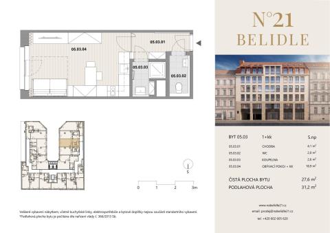www.nabelidle21.cz K prodeji nabízíme byt č. 5.03 o dispozici 1+kk s východní orientací, situovaný v 5. nadzemním podlaží nově vznikajícího rezidenčního projektu Na Bělidle 21. Dům se nachází v atraktivní části Smíchova, v pěší vzdálenosti od stanice metra Anděl, v klidnější ulici mimo hlavní městský ruch. Interiér bytu je řešen ve vysokém standardu, v nadčasovém stylu s využitím kvalitních materiálů a důrazem na dlouhodobou udržitelnost. Dispozice je navržena tak, aby i při menší výměře umožňovala plnohodnotné a pohodlné užívání. Standard zahrnuje podlahové vytápění a chlazení pro rovnoměrný a přirozený tepelný komfort bez nepříjemného proudění vzduchu, hliníková okna s izolačními trojskly a přípravou na elektricky ovládané předokenní žaluzie, třívrstvou dřevěnou podlahu a prémiovou italskou keramiku Fiandre Core Shade v několika dekorech k individuálnímu výběru. Součástí jsou návrhy chytrého interiérového řešení připravené na míru dané dispozici včetně možnosti realizace. Byt tak bude možné snadno zařídit a rychle připravit pro vlastní pohodlné bydlení či pronájem. Dům je aktuálně zařazen do energetické třídy B. Po realizaci napojení na ekologický zdroj energie z Vltavy (Smart Efficient Energy District od Smíchovská teplárenská) bude objekt splňovat parametry energetické třídy A, což dále posílí jeho investiční potenciál. Lokalita nabízí kompletní občanskou vybavenost, rychlou dostupnost do centra i ven z města a plnohodnotné městské prostředí v bezprostředním okolí restaurace, kavárny, obchody i kulturní vyžití. Okolní parky, smíchovská náplavka i četná sportoviště doplňují lokalitu o možnosti aktivního odpočinku a relaxace u řeky i v zeleni. Předání bytů je plánováno na 3. čtvrtletí 2027. K jednotce je možné přikoupit sklepní kóji a parkovací stání. Pro více informací nebo domluvení schůzky nás neváhejte kontaktovat.