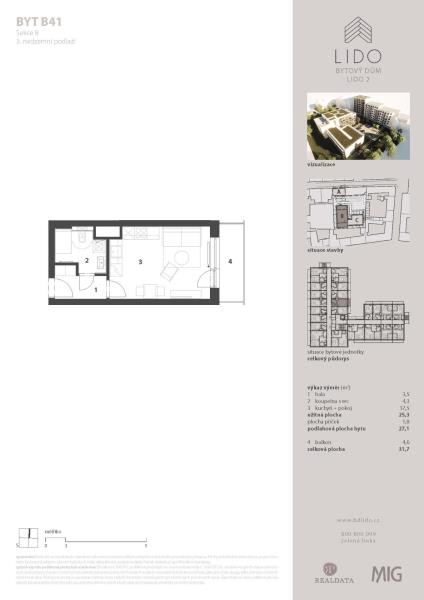 Ve výhradním zastoupení investora nabízíme k prodeji byt s dispozicí 1+kk s balkonem. Velmi pěkný byt vzniká v novém projektu, který navazuje na úspěšnou první etapu. Byt je orientovaný do klidného vnitrobloku a splňuje vysoké nároky na klidné a komfortní bydlení. Koupě bytu je skvělou příležitostí pro startovací bydlení nebo výhodnou investicí. Bytový projekt vzniká v progresivní lokalitě s bohatou kulturní historií a výbornou dostupností do centra města. Jednou z mnoha předností projektu bude uzavřený vnitroblok plný zeleně, kde můžete trávit čas s dětmi nebo jen tak odpočívat. K bytu je možnost přikoupit parkovací stání. Symbiózou nadstandardního zateplení, kvalitních oken, použitých stavebních materiálů a moderních technologií vytápění se podařilo projekt BD LIDO realizovat v energetické třídě A, což znamená mimořádnou úspornost! Dispozice bytu: vstupní chodba (3,5 m²), obývací pokoj s kuchyňským koutem (17,5 m²), koupelna s WC (4,3 m²), balkon (4,6 m²)