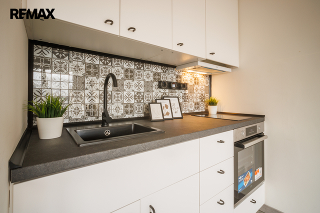 Kompaktní a úsporný byt, jaký se v nabídce objeví málokdy! Tento je navíc po kompletní rekonstrukci, vše nové, připraveno k nastěhování. Organizace bytu je klasická, předsíň se vstupem do koupelny se sprchovým koutem, umyvadlem a toaletou. Poté vstup do pokoje, ve kterém je kuchyňská linka umístěna velmi rozumně za zděnou zástěnou a neruší prostor. Kompletní půdorys najdete ve fotogalerii. V bytě je nové v podstatě vše, rozvody el. i vody, podlahy, dveře i zárubně, sanita, svítidla atd. A když garsonku, tak jedině s balkonem - a zde je, přes celou šířku pokoje. Byt příjemný, útulný viz foto, na podlahách dlažba a vinyl, ve sprchovém koutu polička (jasně, maličkost, ale hodně praktická), pěkný design zařízení. K bytu samozřejmě náleží také sklep.