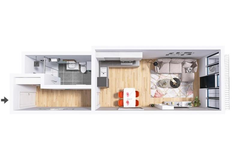 Ráno světlo, večer klid. A mezi tím město na dosah. Byt 1+kk v projektu Lofty Kolbenova dokazuje, že industriální minulost a moderní bydlení si mohou skvěle rozumět. Přiznaný beton a velkoformátová okna odkazují na historii místa, zatímco promyšlené detaily, ticho a současné standardy zajišťují komfort dneška. Vznikl tak byt, kam se budete rádi vracet. Nachází se ve Vysočanech, jen pár minut chůze od stanice metra Kolbenova, odkud jste rychle v centru i na cestě ven z Prahy. Byt o ploše 33,36 m² je situován v nejvyšším patře, díky čemuž nabízí dostatek denního světla, otevřený výhled a příjemný pocit soukromí. Balkon o velikosti 4,51 m² se snadno stane místem pro ranní kávu či krátký odpočinek během dne. Praktický sklep (1,70 m²) řeší úložné prostory. Interiér staví na kontrastu betonu, dřeva a hliníkových oken, které prostoru dodávají nadčasový charakter. O pohodlí se stará klimatizace, rekuperace, podlahové vytápění i venkovní stínění. Okolí žije – kavárny, bistra, galerie, sport i zeleň podél Rokytky jsou na dosah. Naproti projektu stojí Pragovka, centrum kultury a gastronomie, v pěší vzdálenosti je také NC Fénix a O2 aréna. Byt je ideální pro vlastní bydlení i jako chytrá investice díky lokaci, charakteru projektu a stabilní poptávce po kvalitním nájemním bydlení. Možná právě tady začíná vaše další kapitola – přijďte se přesvědčit. Poznámka: Byt se prodává nevybavený. Vizualizace představují jednu z možností designového stylu vybavení bytu.