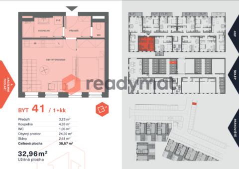 • 1+kk/32,9 m² užitné plochy, sklep 2,61 m²