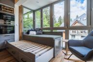 Exkluzivně Vám nabízíme k prodeji luxusní byt v uzavřeném areálu trio Harrachov (novostavba kolaudace 2022 ). Byt o velikosti 1+kk,38m2 + terasa 20m2, Harrachov - Nový Svět se nachází 1.NP, je moderně zařízen novým vybavením na míru ( které je součástí kupní ceny ). Chodba : vestavěná skříň na míru - dub/lamino ,led osvětlení - tři úrovně intenzity svícení, obytná místnost: betonová stěrka, trámy + obložení stěny, kuchyně na míru, veškeré spotřebiče vyšší třídy BOSCH -myčka, lednice mikrovlnná trouba, trouba, varná deska, vybavení kuchyně: Villeroy and Boch, Joseph and Joseph, BergHOFF, apod. kontinentální postel s úložným prostorem 180x200, rozkládací postel ( 2x lůžko 80x200), televize Samsung - výklopná, lihový krb, dubový stůl dubová podlaha. K bytu náleží vlastní parkovací stání, možnost další stání za příplatek. Dům je z dílny pražského ateliéru Michala Kasíka, který se při tvorbě projektu inspiroval typickou krkonošskou architekturou. Harrachov je jedním z nejvýznamnějších krkonošských horských středisek s kompletní infrastrukturou a vynikajícími podmínkami pro široké sportovní vyžití v průběhu celého roku. Komplex je umístěn u potoka a lesa na úpatí vrchu Hřebínek, 150 metrů od lanovky a sjezdovky. V pěším dosahu (600 m) je i stanice lanovky vedoucí na oblíbenou Čertovu horu. K dalším snadno dostupným aktivitám patří, bobová dráha, lanové centrum, koupaliště, krytý bazén nebo paragliding. Hlavní promenáda je blízko, ale zároveň neruší. U komplexu je restaurace, další se nacházejí v těsné blízkosti stejně jako potraviny, pošta nebo bankomaty. K zajímavostem městečka patří Mamutí skokanský můstek, sklářské nebo ski muzeum či úchvatné Mumlavské vodopády. Z Prahy je Harrachov vzdálen necelé 2 hodiny pohodlné jízdy. Tento byt Vám vřele doporučujeme pro více informací a možnost prohlídky kontaktujte makléře.
