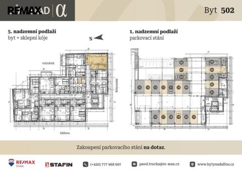 Tento byt s jižní orientací bude vybavený ventilační jednotkou s rekuperací, díky níž nemusí uživatel provádět výměnu vzduchu v bytě otevřením oken. Ve společném garážovém prostoru se bude nacházet několik parkovacích míst, o jejichž aktuální dostupnosti Vám poskytneme více informací na dotaz.
