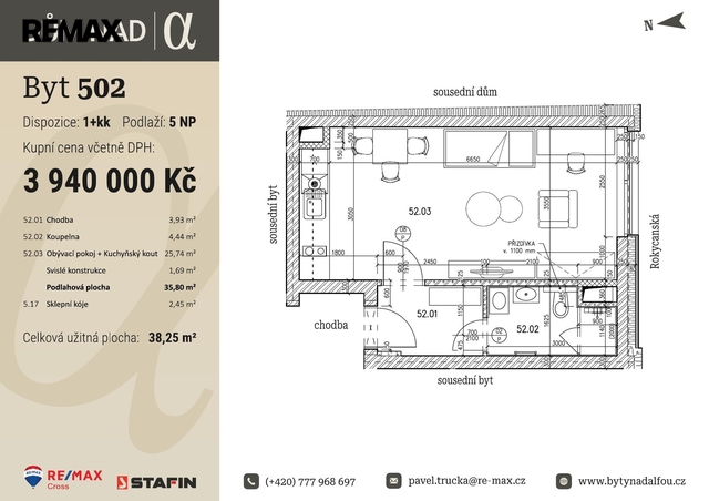 5.02 Nabízíme k prodeji moderní byt 1+kk s bezbariérovým přístupem, který se bude nacházet v V. NP novostavby s výtahem, která vzniká v Plzni na Doubravce na křížení ulic Dítětova a Rokycanská v blízkosti Divadla Alfa.