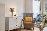 Jednotka, která prošla tento měsíc revitalizací, se nachází ve zvýšeném přízemí. Stejně jako prostorná komora, která je praktickým bonusem pro budoucí majitele, kteří díky ní budou mít dostatek úložného prostoru.