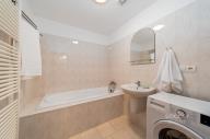 • Koupelna (4,37 m²): Vana, otopný žebřík a místo na pračku.