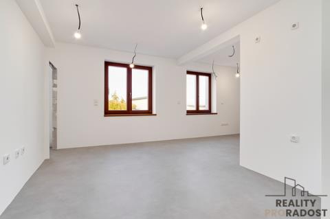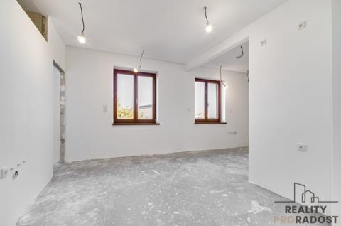 Osvětlení v LED technologii, nové měděné elektroinstalace, příprava pro kuchyňské spotřebiče i digestoř, betonový podklad pro podlahu – vše čeká na finální designový dotek nového majitele.
