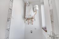 Koupelna byla zrealizována v nadstandardním provedení: rektifikovaná dlažba Ecoceramic 60×120, sprchová vana Ronal z litého mramoru, sprchová zástěna s Antiplaque úpravou a podomítkový systém Geberit u WC.