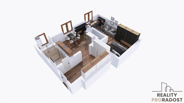 Ve 4. patře cihlového domu na vás čeká byt o podlahové ploše 45 m², který prošel v roce 2025 kompletní a nákladnou rekonstrukcí s cílem vytvořit moderní, otevřený a vysoce komfortní ateliérový prostor (studio).