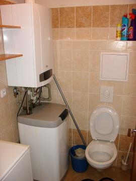 WC – plynový kotel BAXI, bojler na ohřev vody, pračka, poličky,