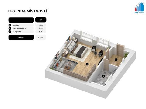 Hledáte skvělou investici, anebo nové bydlení? Naše realitní společnost Vám exkluzivně nabízí ke koupi prostorný byt o dispozici 1+kk v novostavbě moderního bytového domu, který se nachází v centru obce Chotěšov, na ulici Plzeňská. Bytová jednotka o celkové výměře 52,86 m² bude situována v přízemí cihlového domu. Projekt se aktuálně nachází ve fázi výstavby, což Vám stále umožňuje částečně ovlivnit finální podobu interiéru dle Vašich představ. Dispozice bytu zahrnuje vstupní předsíň a prostorný obývací pokoj s kuchyňským koutem, dále koupelnu s možností sprchového koutu či vany a toaletu. K bytu náleží parkovací stání a podíl na příjezdové komunikaci. Komfort bydlení zajistí podlahové vytápění s individuální regulací pomocí termostatů, ohřev vody bude řešen elektrickým bojlerem. Samozřejmostí jsou plastová okna s trojskly, kvalitní podlahové krytiny a moderní sanitární vybavení. Obec Chotěšov nabízí kompletní občanskou vybavenost včetně školy, školky (cca 5 minut chůze), obchodů a dalších služeb. Výhodou je také velmi dobrá dopravní dostupnost díky autobusové i vlakové dopravě. V případě zájmu Vám rádi pomůžeme s vyřízením hypotečního úvěru a zajistíme kompletní servis spojený s koupí nemovitosti. Vřele doporučujeme osobní konzultaci. Kolaudace bytového domu je plánována nejpozději na druhou polovinu roku 2027.