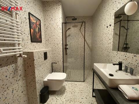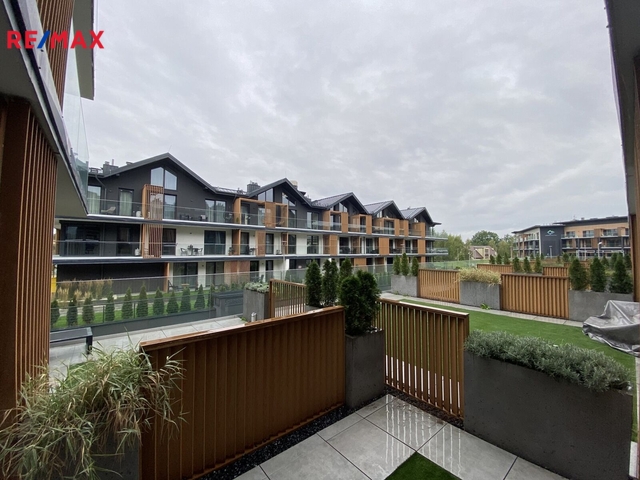 Apartmán se nachází v 1NP. Developerem byl dokončen na klíč s užitnou plochou 34 m² a terasou 22 m². O teplotní pohodu se stará podlahové topení, v létě oceníme klimatizaci. Plně vybavená kuchyně s vestavnou lednicí, myčkou, varnou deskou, mikrovlnou troubou a také veškerým nádobím. Obývací pokoj má rozkládací sedací soupravu, postel, nábytek a televizi. Koupelna se sprchovým koutem a toaletou. Vše co budete potřebovat se zde již nachází.