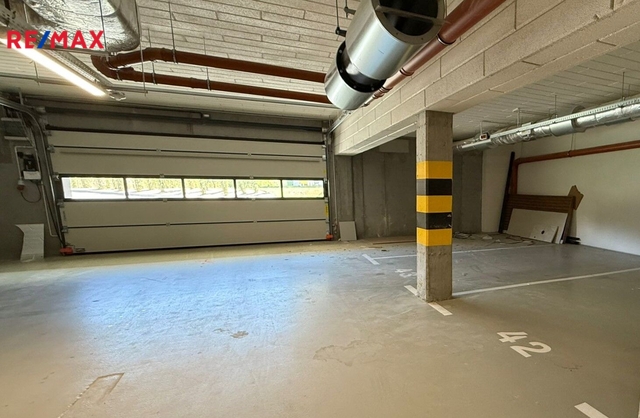 Vlastní parkovací stání je v ceně v podzemní garáži s vraty na dálkové ovládání. Výtahem se dostaneme přímo k apartmánu.
