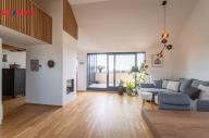 Díky vysokým stropům a důmyslnému řešení působí byt vzdušně a otevřeně.