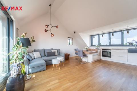 Byt 1+kk, který je v současné podobě otevřeným prostorem, má potenciál být přestavěn na 2+kk. Je orientován na jih a sever. Byt tvoří vstupní chodba s úložným prostorem a knihovnou, obývací pokoj s kuchyňským koutem, galerie (spací nebo relaxační patro), koupelna se sprchovým koutem a WC, a prostorná terasa s krásným výhledem na Břevnov. K bytu dále náleží sklep.