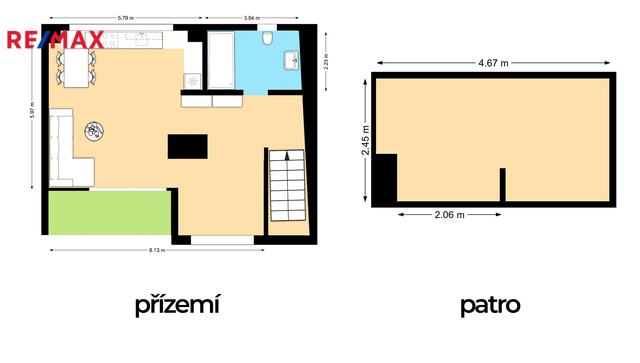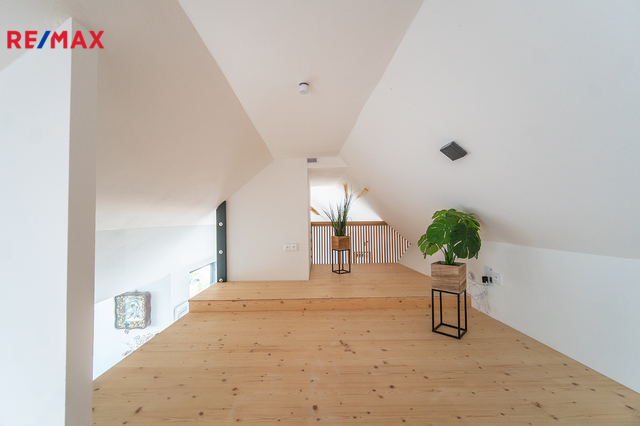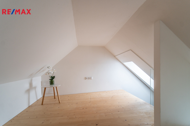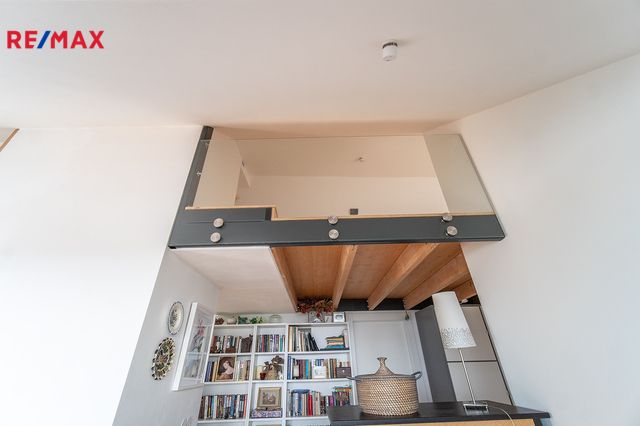 Důležitou součástí bytu je galerie, která může sloužit jako relaxační kout nebo spací zóna. I když je zde nízká světlá výška, tato část bytu přidává na charakteru a funkčnosti.