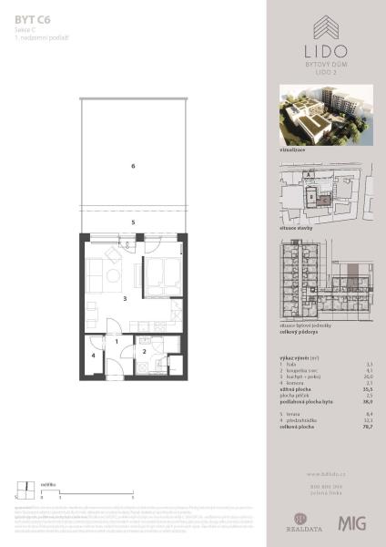 Ve výhradním zastoupení investora nabízíme k prodeji poslední volný byt (C6) 1+kk s nikou, komorou a zahradou v již dokončeném projektu BD LIDO – oceněném titulem Projekt Jihomoravského kraje 2024. Dispozičně výborně řešený a prostorný byt splní vysoké nároky na klidné a komfortní bydlení a představuje skvělou příležitost pro startovací bydlení nebo výhodnou investici. Projekt BD LIDO navazuje na velmi úspěšnou první etapu a je již kompletně dokončen a zkolaudován. Byt se nachází v progresivní lokalitě s bohatou kulturní historií a výbornou dostupností do centra města. Jednou z mnoha předností rezidenčního komplexu je uzavřený vnitroblok plný zeleně, ideální k odpočinku nebo trávení času s dětmi. K bytu je možné přikoupit parkovací stání. Díky nadstandardnímu zateplení, kvalitním oknům, použitým stavebním materiálům a moderním technologiím vytápění se podařilo projekt BD LIDO realizovat v energetické třídě A, což znamená mimořádnou úspornost. Dispozice bytu: hala (3,3 m²) obývací pokoj s kuchyňským koutem (26,0 m²) koupelna s WC (4,1 m²) komora (2,0 m²) terasa (8,4 m²) předzahrádka (32,3 m²)