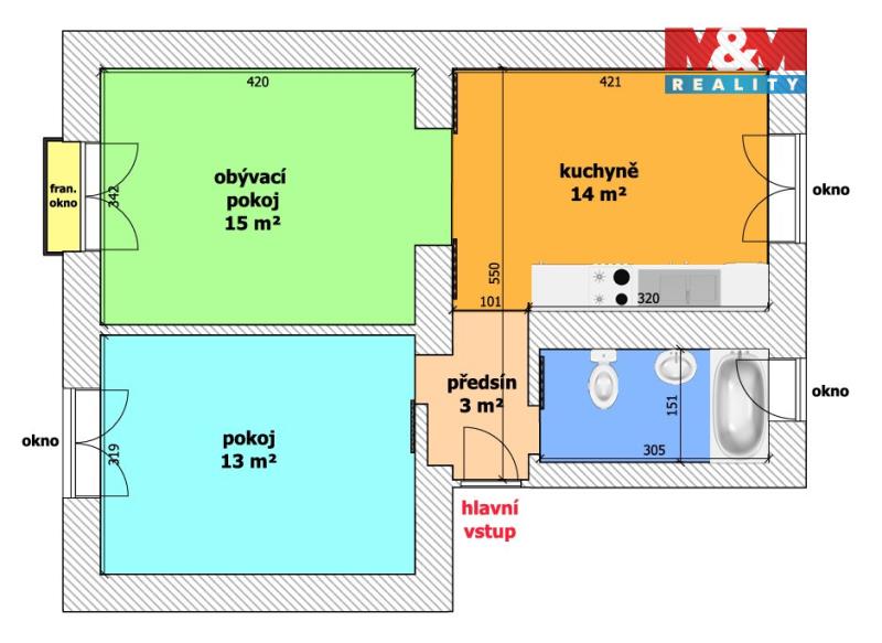 K prodeji, Byt 2+1, 46 m2 Ostrava, Jandova