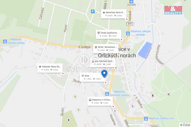 Nabízíme vám ke koupi byt 2+1 v osobním vlastnictví o užitné ploše 59 m² v klidné části obce Rokytnice v Orlických horách v ulici U Nádraží. Tento byt se nachází ve 3. podlaží čtyřpodlažního panelového domu. Využití bytu je ideální volbou jak pro trvalé bydlení, tak i jako investiční příležitost. Byt je v původním, ale udržovaném stavu a nabízí dvě prostorné místnosti, kuchyň s jídelnou, koupelnu, WC a balkón. K bytu dále náleží vlastní sklep a další společné části domu. Vytápění a teplá voda je zajištěna centrální kotelnou. Okolí nabízí klid a krásnou přírodu, ideální pro milovníky horských aktivit. Neváhejte a využijte tuto jedinečnou nabídku v této atraktivní lokalitě. Pro více informací a domluvení prohlídky neváhejte kontaktovat makléře. S financováním vám rád pomůže náš finanční specialista.