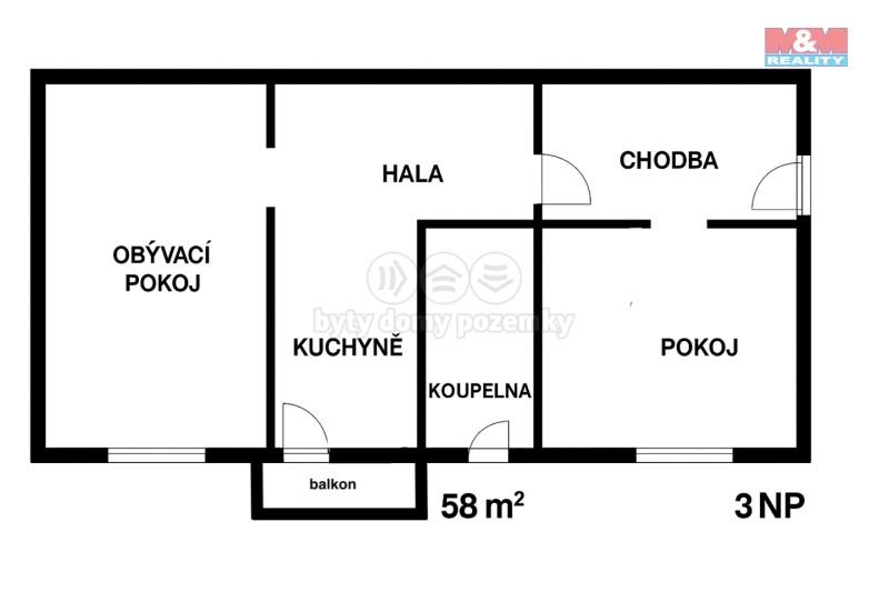 Prodej bytu 2+1 s balkonem, 58 m² – 3. NP, dobrý stav. Nabízíme k prodeji slunný byt o dispozici 2+1 a podlahové ploše 58 m², nacházející se ve 3. nadzemním podlaží nízkopodlažního bytového domu bez výtahu. Byt je v dobrém a udržovaném stavu, připravený k nastěhování nebo k drobné rekonstrukci dle vlastních představ. K dispozici je prostorný balkon, ze kterého je výhled do klidné části vnitrobloku. Dispozici tvoří kuchyně s halou, dva neprůchozí pokoje, koupelna, toaleta a vstupní chodba. Dům je situován v klidné a vyhledávané lokalitě s dostatkem zeleně a veškerou občanskou vybaveností v pěší dostupnosti. Domluvte si prohlídku u makléře.