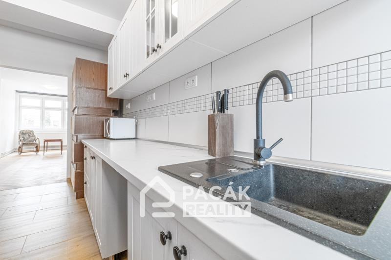 Hledáte byt s parametry a zázemím rodinného domu a parkovacím místem? Pak je tato nabídka určena vám. Ve výhradním zastoupení majitele nabízíme k prodeji zrekonstruovaný mezonetový byt 2+1 v osobním vlastnictví o ploše 102 m2 v zajímavě architektonicky řešeném bytovém domě, ke kterému patří pozemek o výměře 2 744 m2 na ul. Přerovská v Bystřici pod Hostýnem. Bytový dům situovaný na vlastním pozemku, který se nachází před i za domem, obklopeným zelení a vzrostlými stromy, tvoří 10 vedle sebe stojících bytových jednotek, z nichž každý byt má samostatný vchod z ulice a také samostatný výstup do oploceného dvorního traktu s možností parkování osobních vozidel na společném pozemku. Dispozice mezonetového bytu nabízí v přízemí k užívání velký obývací pokoj, kuchyň s novou kuchyňskou linkou a přípravou na umístění pračky, samostatné WC. Z obývacího pokoje je přístup na terasu orientovanou na jihozápad, která nabízí uživatelům příjemné posezení v exteriéru obklopeném zelení. Dřevěné schodiště zakomponované do obývacího pokoje umožňuje přístup po 1. patra, v němž je umístěna ložnice, koupelna se sprchovým koutem a WC. Byt je částečně podsklepen, z chodby bytu se vstupuje po schodišti do dvou zděných sklepních prostor v suterénu o ploše 26 m2 a 7 m2, ve kterém je umístěn plynový kondenzační kotel. Sklepní prostory mají samostatný výstup do dvorního traktu. Byt prošel zdařilou rekonstrukcí, v jejímž rámci byly udělány nové rozvody topení, osazeny nové radiátory, nové rozvody vody a odpadu, nové elektro rozvody s měděnými vodiči, osazena nová plastová okna se stíněním, rekonstruovaná kuchyň včetně kuchyňské linky a podlahové krytiny, rekonstruováno WC, vstupní chodba, koupelna s WC v 1. patře. Byt je napojen na kanalizaci, městský vodovod, elektřinu, plyn. Je vytápěn ústředním topením s napojením na plynový kondenzační kotel. Ohřev vody zajišťuje elektrický bojler umístěný v koupelně. Na společném pozemku za bytovým domem je skladovací objekt, před nímž je parkovací místo pro osobní vozidla. Vjezd na společný pozemek za domem je po zpevněné komunikaci, pozemek je oplocen. Toto bydlení je ideální pro zájemce, kteří hledají kompromis mezi bydlením v rodinném domě nebo bytě, jelikož spojuje prvky z obou typů nemovitostí. Město Bystřice pod Hostýnem nabízí veškerou občanskou vybavenost, město nabízí dostatek příležitostí pro volnočasové aktivity na městských sportovištích (bazén, tenisové kurty, dětské hřiště, fotbalový stadion aj.). Hostýnské vrchy nabízejí dostatek příležitostí pro aktivní turistiku. Lokalitou prochází řada cyklostezek. Nabídka prodeje tohoto atypického bytu s parkovacím místem a nadstandardním zázemím je zcela výjimečná a nabízí i zajímavou investiční příležitost. Nespornou výhodou tohoto bytu jsou nízké náklady na bydlení. S financováním nákupu bytu vám poskytne informační servis náš finanční poradce. Doporučujeme prohlídku.