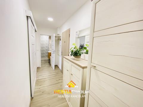 Nabízíme k prodeji krásně zrekonstruovaný a vkusně zařízený byt 2+1 o výměře 45 m2 na ulici Nová v Mohelnici. Byt se nachází 1.NP s výtahem a bezbariérovým přístupem. Cena zahrnuje veškeré vybavení včetně nábytku, takže stačí přinést jen osobní věci a můžete bydlet. Dominantou bytu je moderní kuchyňská linka na míru vybavená vestavěnými spotřebiči Whirlpool, prostornou lednicí a indukční varnou deskou. Obývací pokoj o ploše 16 m2 je zařízený stylovým sladěným nábytkem, který dotváří příjemnou atmosféru. Ložnice 12 m2 nabízí klidné místo pro odpočinek a dostatek prostoru pro velkou šatní skříň. Koupelna prošla kompletní rekonstrukcí, je vybavena sprchovým koutem, toaletou, závěsným koupelnovým nábytkem, pračkou a sušičkou značky Beko. K bytu náleží také sklepní kóje o velikosti 1,3 m2. Před domem je dostatek parkovacích míst. Mohelnice je historické město s veškerou občanskou vybaveností, s výbornou dopravní dostupností do Olomouce, s mnoha pracovními příležitostmi. V blízkosti se nachází chráněná krajinná oblast Litovelské Pomoraví, ideální pro pěší turistiku a cykloturistiku. V případě vašeho zájmu mě neváhejte kontaktovat, budu se těšit na osobní setkání na prohlídce nemovitosti.