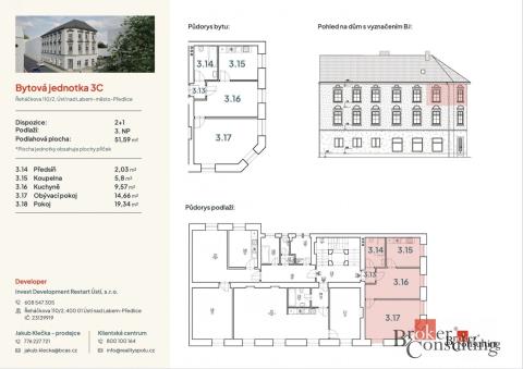 Prodej bytu 2+1 po rekonstrukci Nabízíme k prodeji bytovou jednotku o dispozici 2+1 a výměře 51,4 m² v městské části Předlice v Ústí nad Labem. Byt je součástí projektu Řeháčkova 110/2, kde prošel kompletní rekonstrukcí celý bytový dům. V rámci projektu je v domě nově vytvořeno celkem 7 bytových jednotek o dispozicích 2+1 a 3+kk, které jsou postupně nabízeny k prodeji. Samotný byt prošel rozsáhlou rekonstrukcí, která zahrnovala nové rozvody elektřiny, vody i odpadů, modernizaci koupelny a instalaci nové sanity. Součástí bytu je také nová kuchyňská linka, která je již zahrnuta v ceně nemovitosti. Díky provedené rekonstrukci je byt připraven k okamžitému užívání bez dalších investic. Velkou výhodou je možnost zpětného pronájmu developerovi, který si byt pronajme a následně jej bude využívat. Kupující tak získává nájemné ve výši 14 500 Kč měsíčně, s indexací nájemného, a zároveň smluvně sjednanou možností odkupu nemovitosti za 5 let s navýšením ceny o 5 %. Tento model nabízí kombinaci pravidelného měsíčního příjmu Obchodní parametry: nájemné 14 500 Kč / měsíc roční příjem 174 000 Kč hrubý výnos přibližně 6 % ročně možnost odkupu po 5 letech s navýšením ceny o 5 % Městská část Předlice je součástí krajského města Ústí nad Labem a nabízí dobrou dopravní dostupnost i napojení na městskou infrastrukturu. V okolí se nachází zastávky MHD, které zajišťují rychlé spojení do centra města. V širším okolí je dostupná občanská vybavenost, včetně obchodů, škol, zdravotních služeb a dalších služeb ve městě. Ústí nad Labem prochází v posledních letech výraznou proměnou a připravuje se několik strategických projektů, které mohou v budoucnu pozitivně ovlivnit atraktivitu i hodnotu nemovitostí v regionu: Vysokorychlostní trať Praha – Ústí nad Labem – Drážďany (RS4), která má výrazně zlepšit dopravní dostupnost regionu Jezero Milada, postupně rozvíjené jako významná rekreační a rozvojová lokalita Rozvojový plán Zoo Ústí nad Labem, zahrnující modernizaci areálu a nové expozice Strategie rozvoje města Ústí nad Labem 2021–2030, zaměřená na revitalizaci města, infrastruktury a veřejného prostoru Hlavní výhody dispozice 2+1 | 51,4 m² byt součástí projektu Řeháčkova 110/2 zrekonstruovaný bytový dům nové rozvody elektřiny, vody a odpadů nová sanita a kuchyňská linka v ceně nájem 14 500 Kč / měsíc indexace nájemného možnost odkupu za 5 let s navýšením ceny o 5 % V případě zájmu o více informací nebo domluvení prohlídky mě neváhejte kontaktovat.