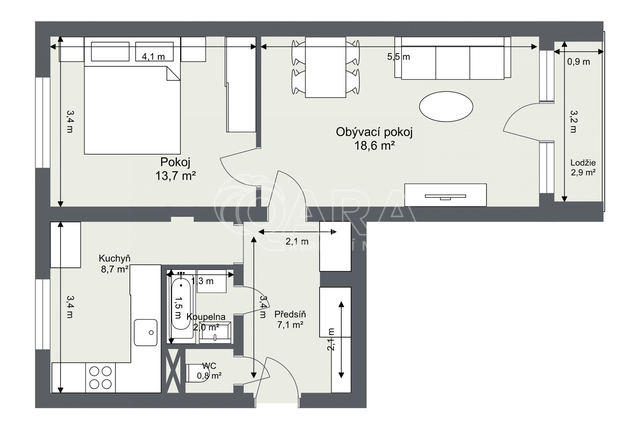 K prodeji, Byt 1+1, 41 m2 Ruská