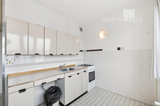 Kuchyň je zde opravdu samostatným prostorem s vlastním oknem. To je přesně ten typ dispozice, který vám nechává svobodu. Můžete si ponechat klasické, praktické 2+1, nebo při rekonstrukci koncept posunout dál a otevřít byt modernějšímu stylu života tím, že ji propojíte s obývákem.