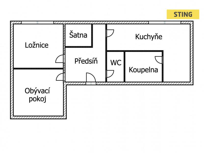 K prodeji, Byt 2+1, 53 m2 Zubří, Sídlištní