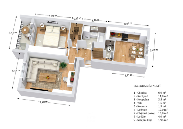 Byt prošel v roce 2021 kompletní modernizací, která zahrnovala novou elektroinstalaci a vodoinstalaci, srovnání podlah a pokládku kvalitní vinylové krytiny, vybudování zděného bytového jádra, instalaci nové kuchyňské linky s vestavěnými spotřebiči a realizaci sádrokartonových podhledů, které dodávají interiéru moderní a čistý vzhled. Lodžie poskytuje příjemné místo k odpočinku a sklepní kóje nabízí další praktický úložný prostor. Byt představuje ideální volbu jak pro vlastní bydlení, tak jako zajímavou investiční příležitost k následnému pronájmu.