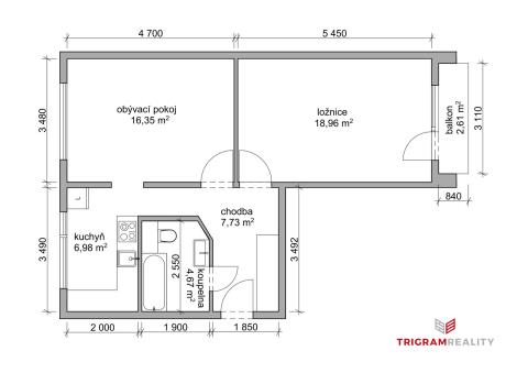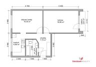 - Dispozice 2+1, podlahová plocha 55 m² + balkon 2,61 m²