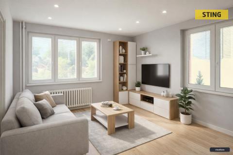 Nabízíme k prodeji světlý a dobře dispozičně řešený byt 2+1 v osobním vlastnictví o velikosti 59,5 m2 včerně lodžie. Tento byt se nachází v 5. nadzemním podlaží sedmipodlažního zrevitalizovaného domu na ulici I. Šustaly v Kopřivnici. Dům stojí v klidné lokalitě a v blízkosti má veškerou občanskou vybavenost. Byt je v původním stavu a nový majitel má tedy možnost si jej zrekonstruovat podle svých představ. V pokojích jsou na podlaze původní parkety, ve zbytku bytu je betonová podlaha pokrytá PVC. Kuchyň je orientovaná na západ a je z ní východ na lodžii s krásním výhledem. Obývací pokoj je orientován rovněž na západ a ložnice směřuje na východ. Dům stojí ve slepé ulici a je zde minimální provoz. Součástí bytu je praktická komora. Fotografie interiéru jsou řešeny jako porovnání vizualizace budoucího možného stavu a stavu stávajícího. Vytápění i ohřev vody jsou zajišťovány dálkově. K bytu patří sklepní kóje umístěná v suterénu domu. Správu tohoto domu zajišťuje malé SVJ. V současné době nemáme k dispozici energetický štítek PENB budovy, proto v inzerátu uvádíme energetickou třídu G. Ráda Vás přivítám na prohlídce, kde vše uvidíte ve skutečnosti. S financováním vám samozřejmě rád pomůže náš hypoteční specialista. Výměry jednotlivých místností: kuchyně - 8,702 m2 pokoj 1 - 17,931 m2 pokoj 2 - 12,762 m2 chodba - 8,885 m2 komora - 2,687 m2 WC - 0,959 m2 koupelna - 2,546 m2 sklep - 1,651 m2 lodžie - 3,466 m2. Do konce dubna 2026 nabízíme prostřednictvím našeho partnera úrokové sazby od 4,69 % p.a. Více informací Vám sdělí náš specialista na prohlídce.