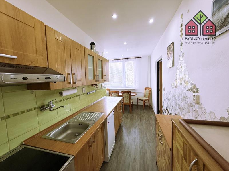Byt o podlahové ploše 62 m2 + příslušenství se sestává z obývacího pokoje, kuchyně s jídelnou, ložnice, koupelny a WC, zádveří a lodžie (3,7 m2). Byt je po částečné rekonstrukci (zděné koupelnové jádro, SDK stropy, podlahy) v dobrém a udržovaném stavu. Obývací pokoj je velice prostorný a také největší místností bytu. Ložnice má přímý vstup na lodžii. Kuchyně je vybavená kuchyňskou linkou s elektrospotřebiči -> indukční varná deska, elektrická trouba, digestoř, myčka nádobí. V rámci kuchyně je k dispozici i jídelní kout. V koupelně je situovaná rohová vana, WC, topný žebřík, umyvadlo, místo pro automatickou pračku. Byt je orientovaný na jižní a severní stranu s výhledem do okolní zeleně -> po většinu dne je v něm velmi příjemně.