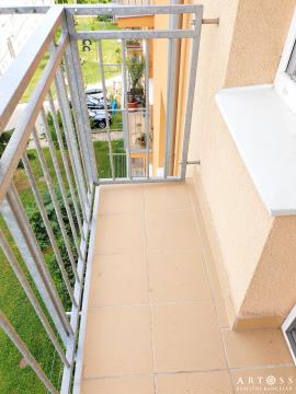 Byt je velmi dobře dispozičně řešený, sestává se z prostorného obývacího pokoje, samostatné ložnice, kuchyně, koupelny a samostatného WC. K bytu náleží balkon (1,5 m2), který je přístupný z kuchyně a je z něho krásný výhled do okolí.