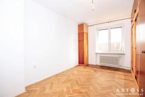 Byt o podlahové ploše 54 m2 je situovaný ve 4. patře cihlového bytového domu.
