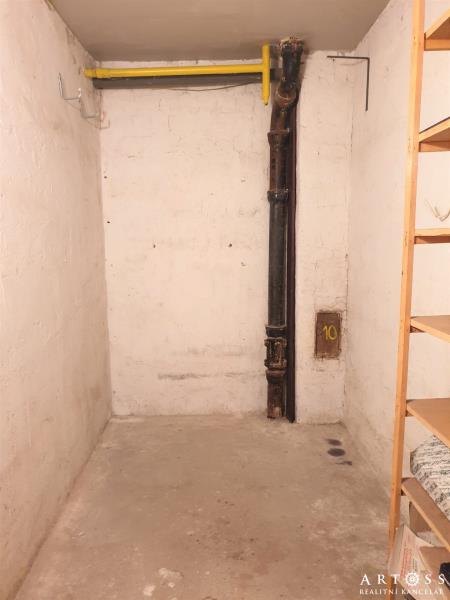 K bytu náleží i velký zděný bezpečný sklep o výměře 7 m2. Celková plocha bytu včetně balkonu a sklepa činí 63 m.