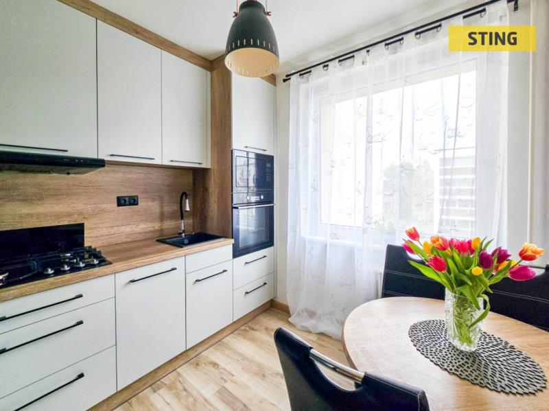 Nabízíme Vám ke koupi byt 2+1 v osobním vlastnictví s velkorysou zasklenou lodžií, který se nachází ve 2. patře domu po celkové revitalizaci ve velmi žádané lokalitě k bydlení, konkrétně na ulici Okružní v Karviné-Ráji. Lodžie je součástí velikého obývacího pokoje (19m2), který díky širokým okenním tabulím působí světlým a příjemným dojmem. Podlaha je vinylová, stejně jako v předsíni a kuchyni. Předsíň má praktickou vestavěnou skříň a také je zde komora, kde je možné umístit pračku, sušičku a je zde spousta dalšího úložného prostoru. Druhý pokoj i s vestavěnou šatní skříni je také dostatečně veliký. Koupelna je zděná, v obkladech a s dlažbou, má vanu i umyvadlo a je ve stejném barevném provedení jako WC, které je hned vedle a samostatně. Kuchyň disponuje moderní, vkusnou linkou s dostatkem úložného prostoru, je zde vestavěná myčka nádobí, elektrická i mikrovlnná trouba, digestoř a plynová varná deska. A stále je zde dostatek místa pro jídelní stůl s židlemi a ledničku. Obývací pokoj nabízí výhled na ZŠ Borovského, kuchyň a druhý pokoj má výhled do dvora. V blízkosti domu je dostatek parkovacích míst, nedaleko zastávka MHD, potraviny Hruška a lesopark Bažantnice. Sdrečně Vás zvu na prohlídku bytu, jedná se o skvělou příležitost pořídit si bydlení v této skvělé lokalitě. Kontaktujte mě kdykoliv, domluvíme si termín prohlídky. Do konce března 2026 nabízíme prostřednictvím našeho partnera úrokové sazby od 4,29 % p.a. Více informací Vám sdělí náš specialista na prohlídce.