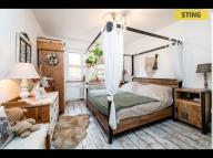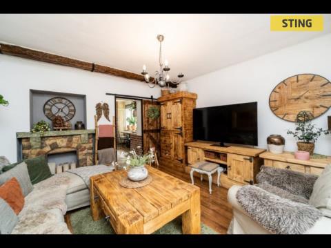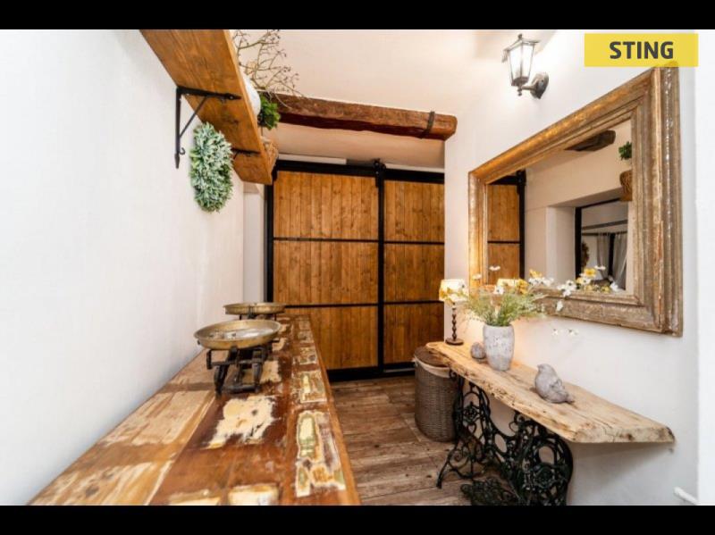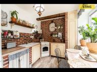 Milovníky masivního nábytku potěší, že stylové vybavení, které dotváří jedinečnou atmosféru bytu, je součástí prodeje.