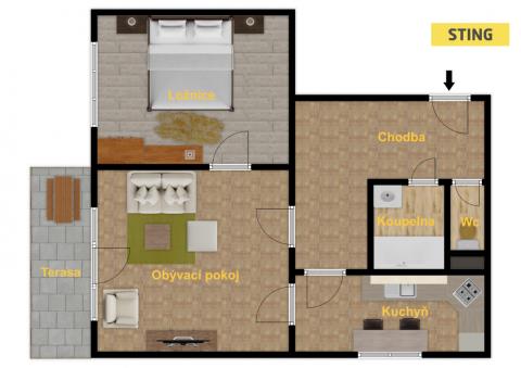 Pak Vás tento krásně zařízený byt 2+1 s komorou (1,85 m²) nadchne už při první návštěvě.