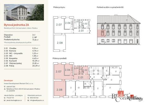Investiční byt 2+1 po rekonstrukci | výnos 6 % p.a. | zpětný pronájem Nabízíme k prodeji bytovou jednotku o dispozici 2+1 v městské části Předlice v Ústí nad Labem. Byt je součástí projektu Řeháčkova 110/2, kde prošel kompletní rekonstrukcí celý bytový dům. V rámci projektu je v domě nově vytvořeno celkem 7 bytových jednotek o dispozicích 2+1 a 3+kk, které jsou postupně nabízeny k prodeji. Samotný byt prošel rozsáhlou rekonstrukcí, která zahrnovala nové rozvody elektřiny, vody i odpadů, modernizaci koupelny a instalaci nové sanity. Součástí bytu je také nová kuchyňská linka, která je již zahrnuta v ceně nemovitosti. Díky provedené rekonstrukci je byt připraven k okamžitému užívání bez dalších investic. Velkou výhodou je možnost zpětného pronájmu developerovi, který si byt pronajme a následně jej bude využívat. Zájemce tak získává nájemné ve výši 22 000 Kč měsíčně, s indexací nájemného, a zároveň smluvně sjednanou možností odkupu nemovitosti za 5 let s navýšením ceny o 5 %. Tento model nabízí kombinaci pravidelného měsíčního příjmu a budoucího kapitálového zhodnocení. Městská část Předlice je součástí krajského města Ústí nad Labem a nabízí dobrou dopravní dostupnost i napojení na městskou infrastrukturu. V okolí se nachází zastávky MHD, které zajišťují rychlé spojení do centra města. V širším okolí je dostupná občanská vybavenost, včetně obchodů, škol, zdravotních služeb a dalších služeb ve městě. Ústí nad Labem prochází v posledních letech výraznou proměnou a připravuje se několik strategických projektů, které mohou v budoucnu pozitivně ovlivnit atraktivitu i hodnotu nemovitostí v regionu: Vysokorychlostní trať Praha – Ústí nad Labem – Drážďany (RS4) Jezero Milada – postupně rozvíjené rekreační a rozvojové území Rozvojový plán Zoo Ústí nad Labem s novými expozicemi Strategie rozvoje města Ústí nad Labem 2021–2030 Hlavní výhody dispozice 2+1 byt součástí projektu Řeháčkova 110/2 kompletně zrekonstruovaný bytový dům nové rozvody elektřiny, vody a odpadů nová sanita a kuchyňská linka a spotřebiče v ceně nájem 22 000 Kč / měsíc indexace nájemného možnost odkupu za 5 let s navýšením ceny o 5 % V případě zájmu o více informací nebo domluvení prohlídky mě neváhejte kontaktovat. BC je zprostředkovatel, investiční parametry jsou pouze orientační a nezohledňují další náklady.
